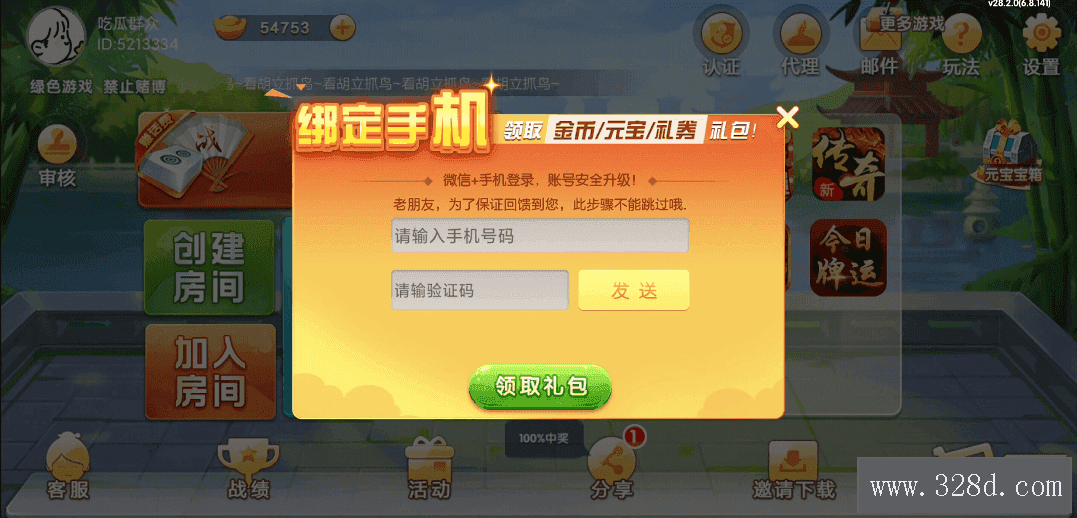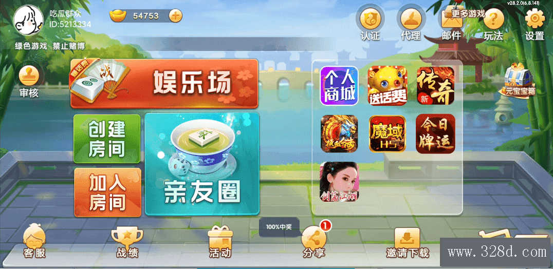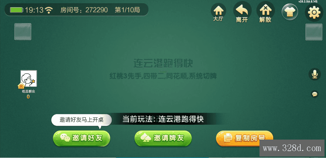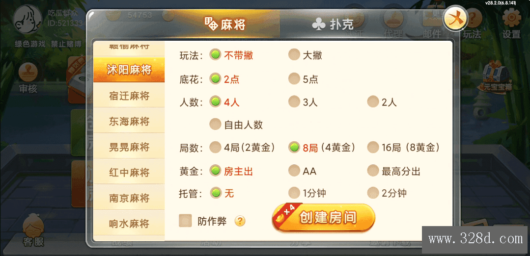 这是七星江苏地区的端,UI也不错,七星这块做的挺好的。这个端是房卡端+亲友圈模式。