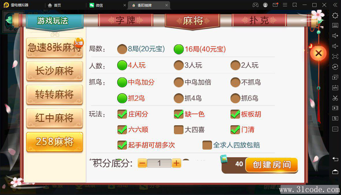麻将:急速8张麻将,258麻将,长沙麻将,转转麻将,红中麻将
