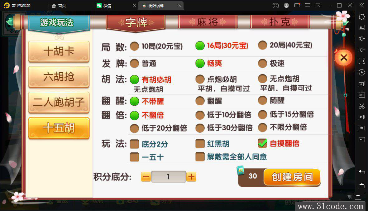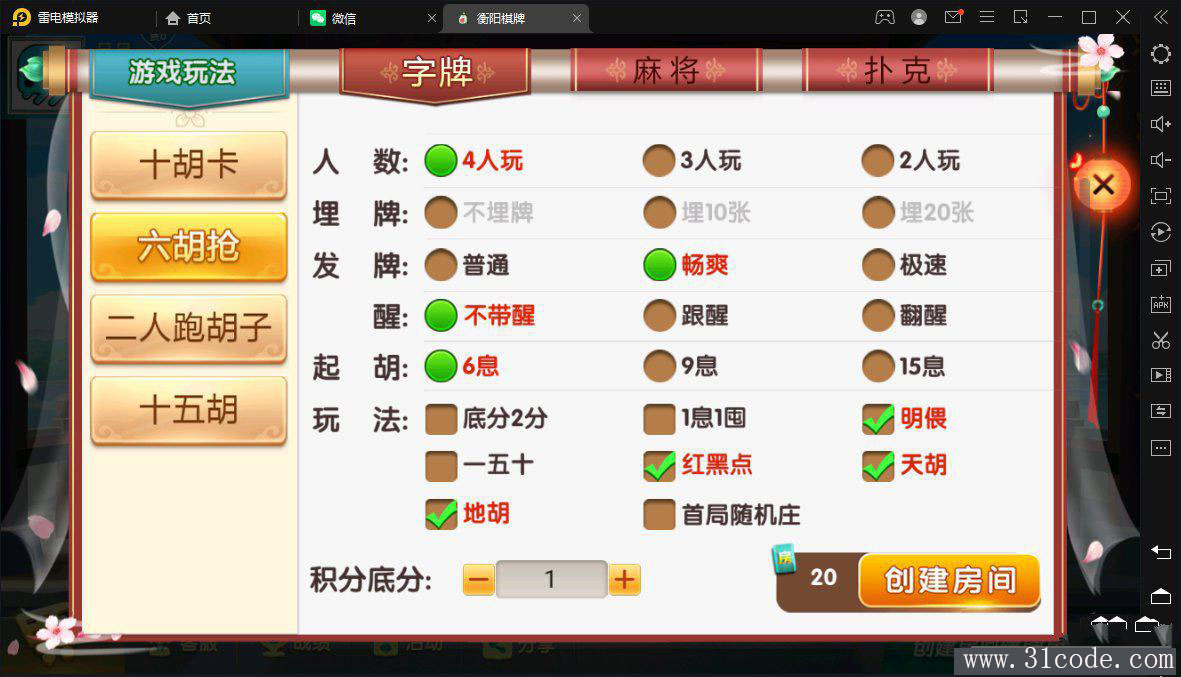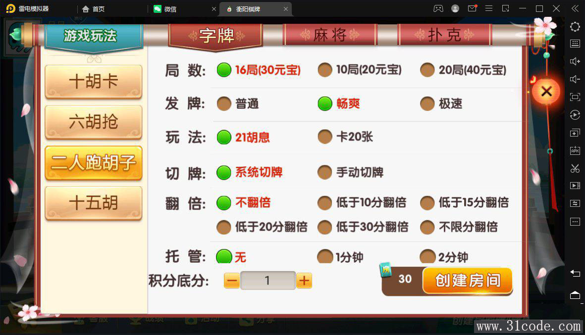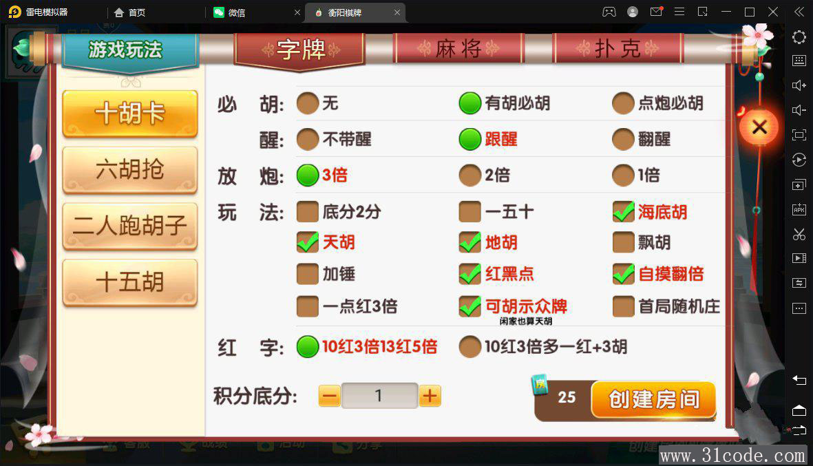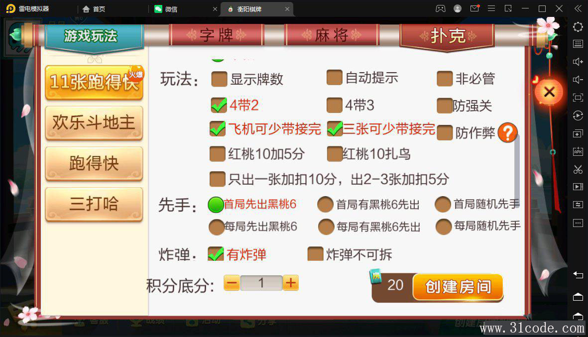 七星衡阳麻将扑克字牌房卡端12子游戏+亲友圈乐豆模式+比赛模式+双端