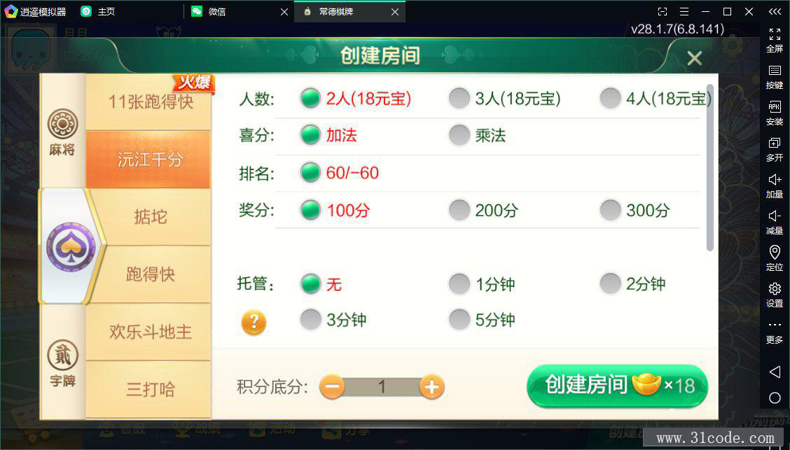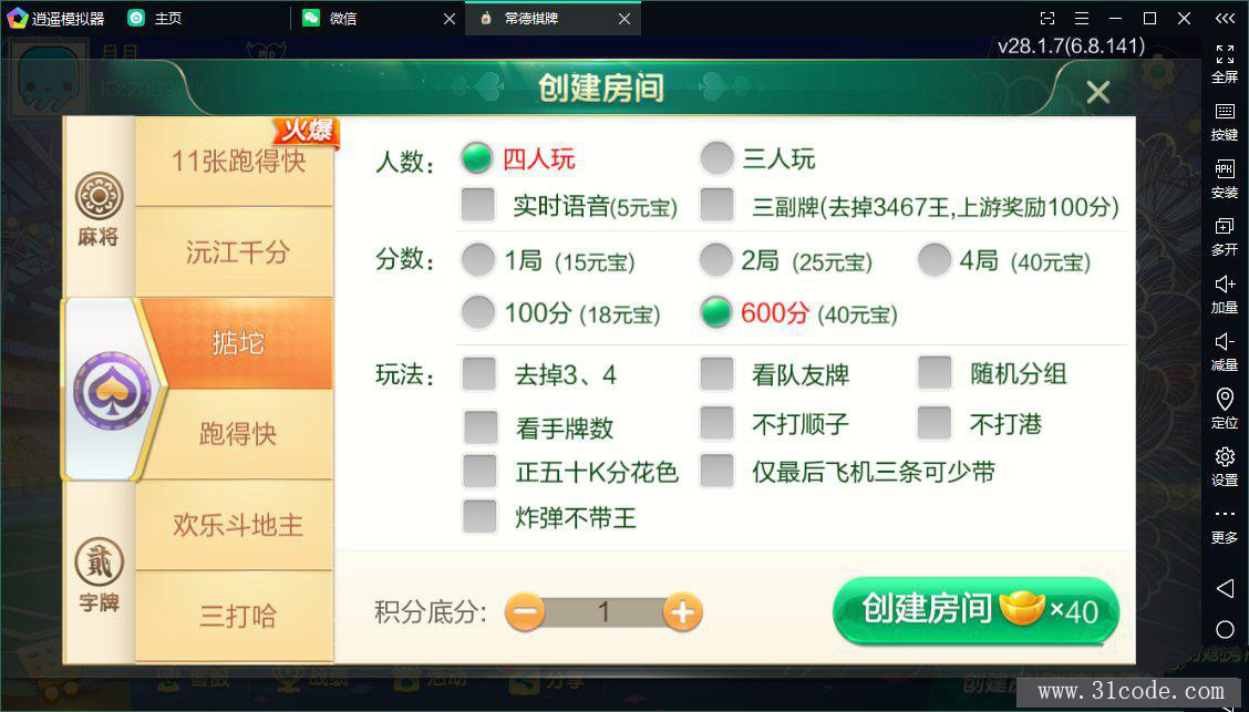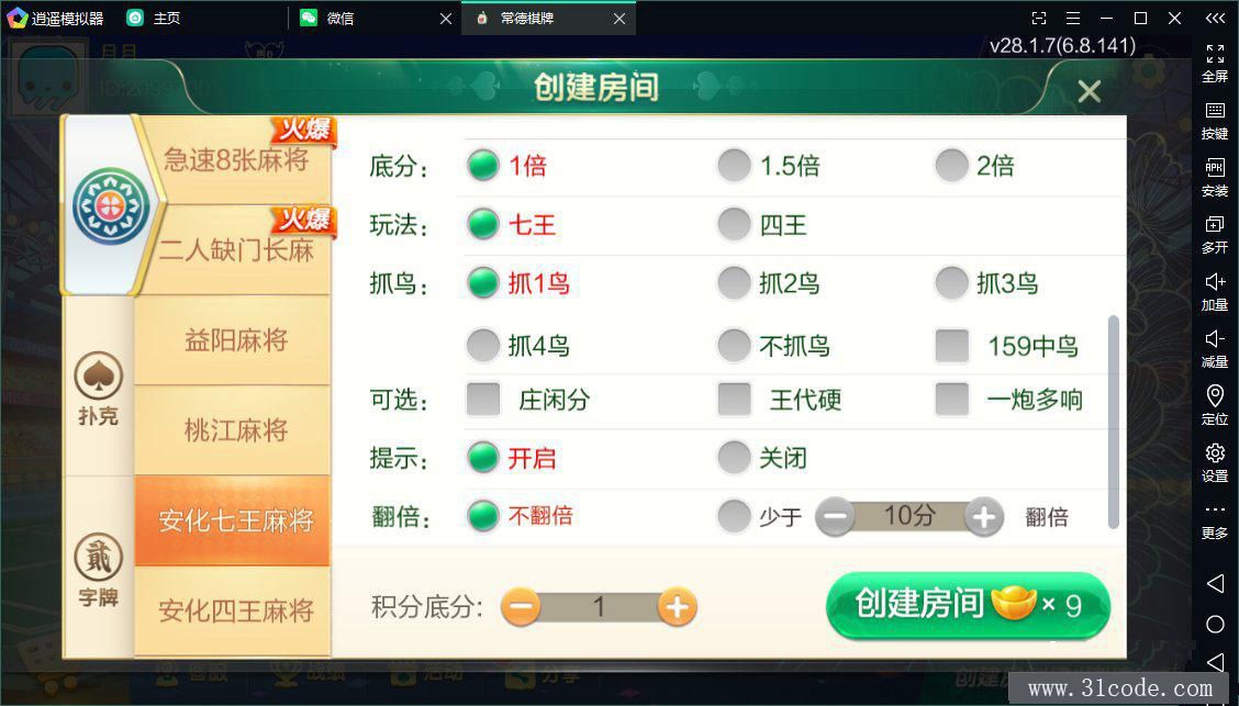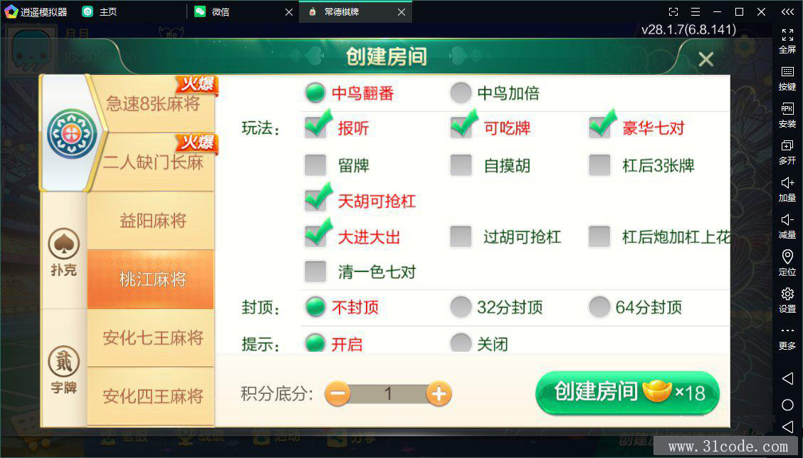 七星益阳麻将扑克字牌房卡端14子游戏+亲友圈乐豆模式+比赛模式+双端