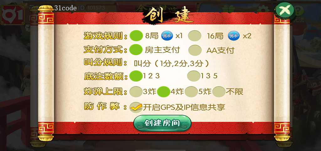 全民棋牌使用国风背景设计,游戏房间UI以古风清朝格格样式制作,游戏前端UI素材没有任何加密,可以随便自行搭建修改,大厅含有多种游戏,其中游戏分为斗地主、填大坑、扎金花、全民麻将、牛牛。