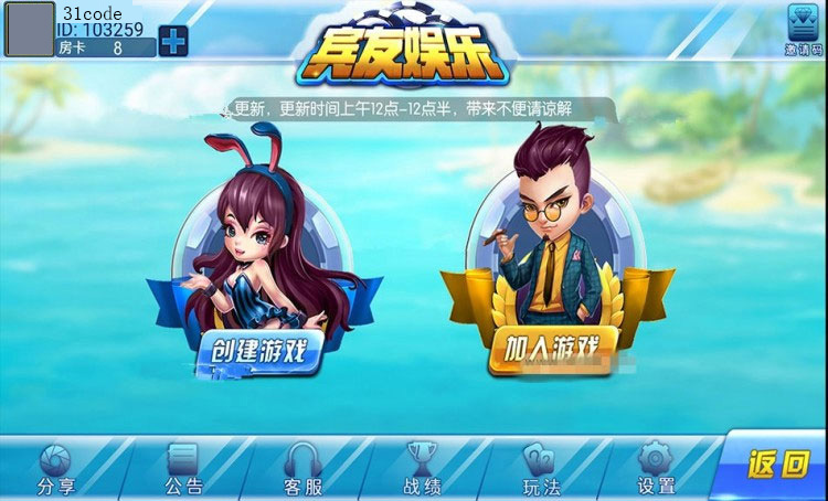 宾友棋牌房卡合集