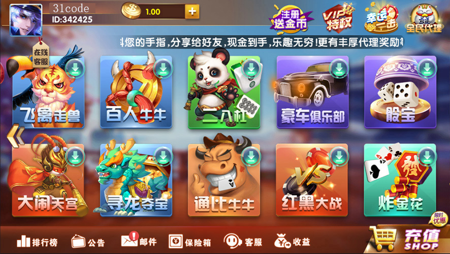 最新万利棋牌游戏组件 全民代理+三级分销 已对接支付猫支付接口