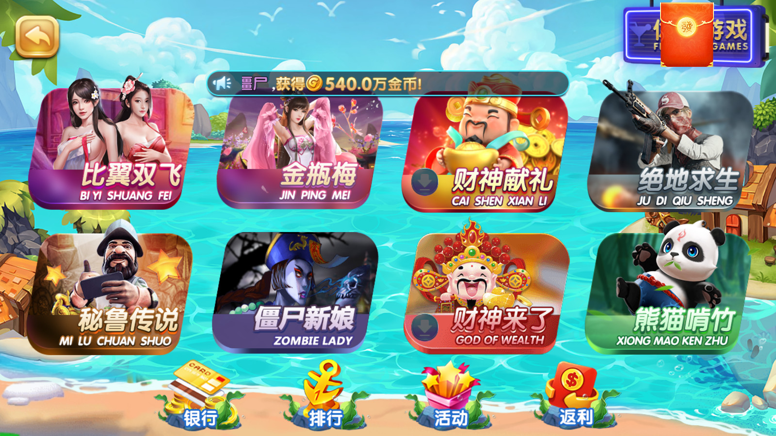 此电玩平台子游戏:李逵劈鱼,大闹天宫,四人牛牛,通比牛牛,二人牛牛,水果玛丽,九线拉王,十二生肖,月光宝盒,疯狂玛丽,赏金船长,比翼双飞,秘鲁传说,僵尸新娘,财神献礼,财神来了,绝地求生,熊猫啃竹,金瓶梅,黑红梅方
