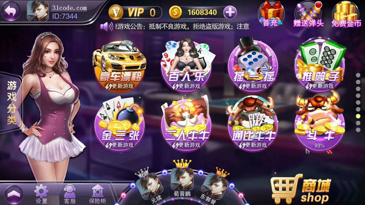 富贵电玩3运营级棋牌完整组件 至尊版+国际版+旺旺版三款双端APP【完美运行】