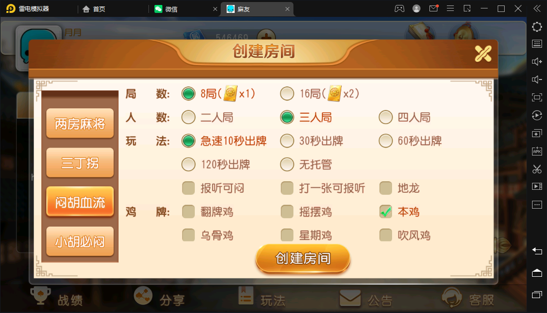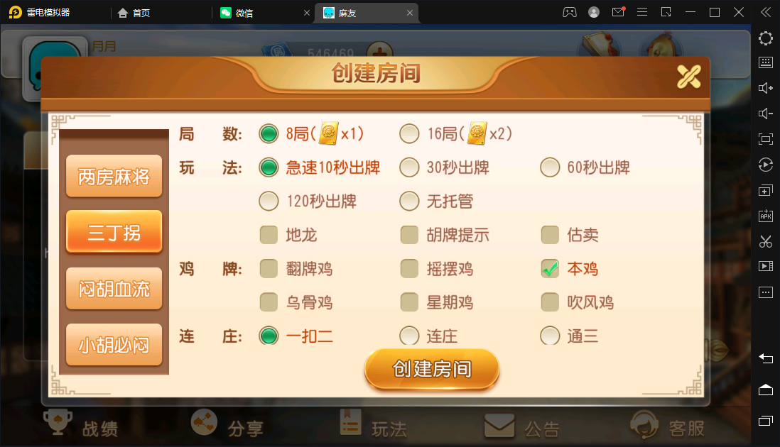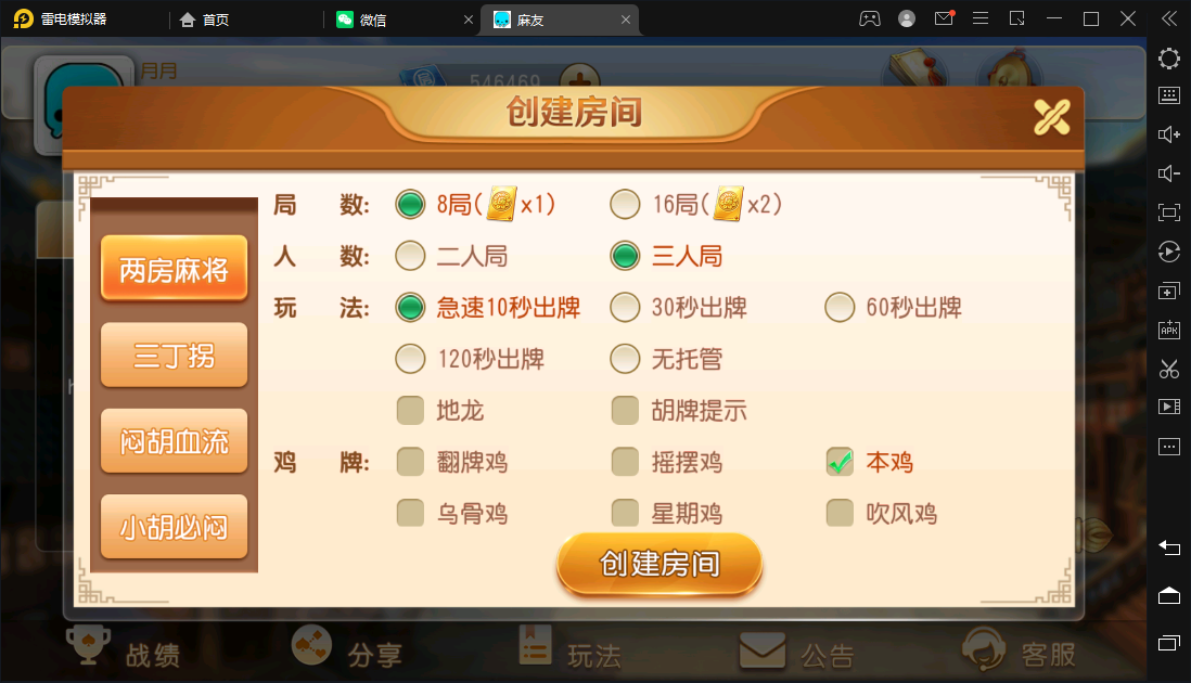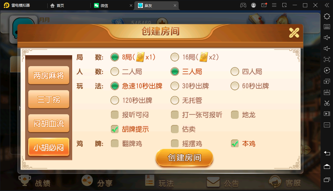 创胜系列/麻友/贵州捉鸡麻将地方玩法大联盟房卡棋牌组件