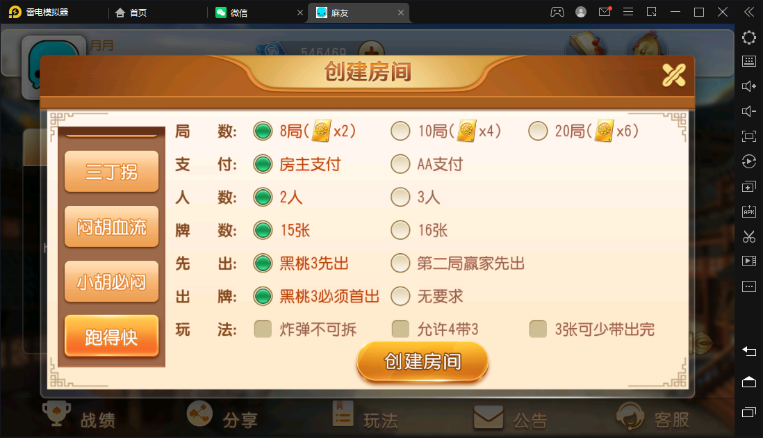 贵州麻将,两房麻将,三丁拐,闷胡血流,小胡必闷,跑得快,全带控!