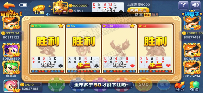 棋牌场:斗地主、百人牛牛、炸J花、抢庄牛牛、红黑大战