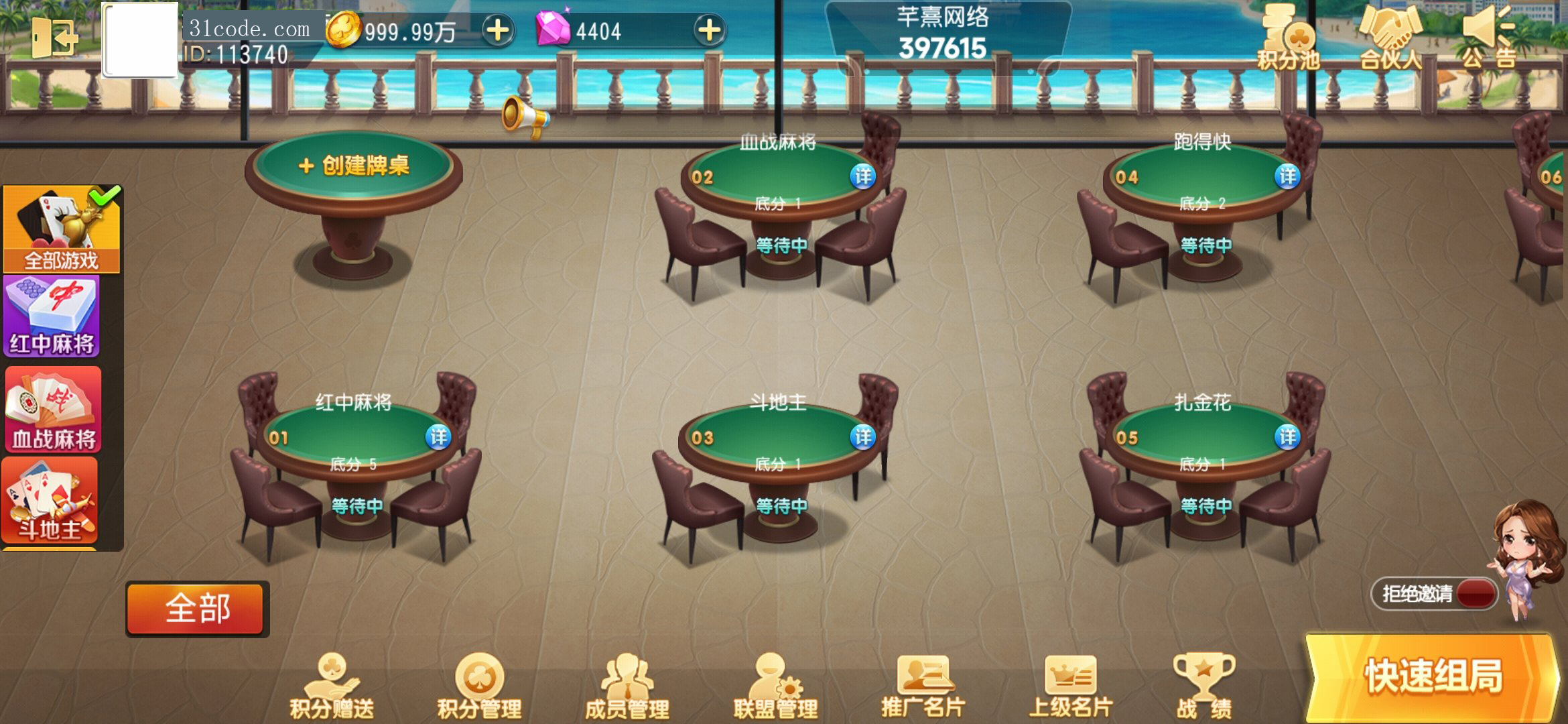 创胜系列同城麻将游戏包含:红中麻将 斗地主 血战麻将 东北推筒子 跑得快 扎金花 三公。带控 双端 UI还可以。 附件 文件名: 创胜同城麻将 提取码: ****(需购买后查看) 解压密码: ****(需购买后查看) 下载文件 附件购买 售价:98 积分 开通VIP或更高级的会员可免费下载该文件 请登录 或 注册购买 这里是自定义内容,请在【用户中心配置 - 销售配置 - 附件下载 - 未登录提示】修改 房卡约战类 转载请说明出处 内容投诉31棋牌源码资源网 » 创胜系列同城麻将