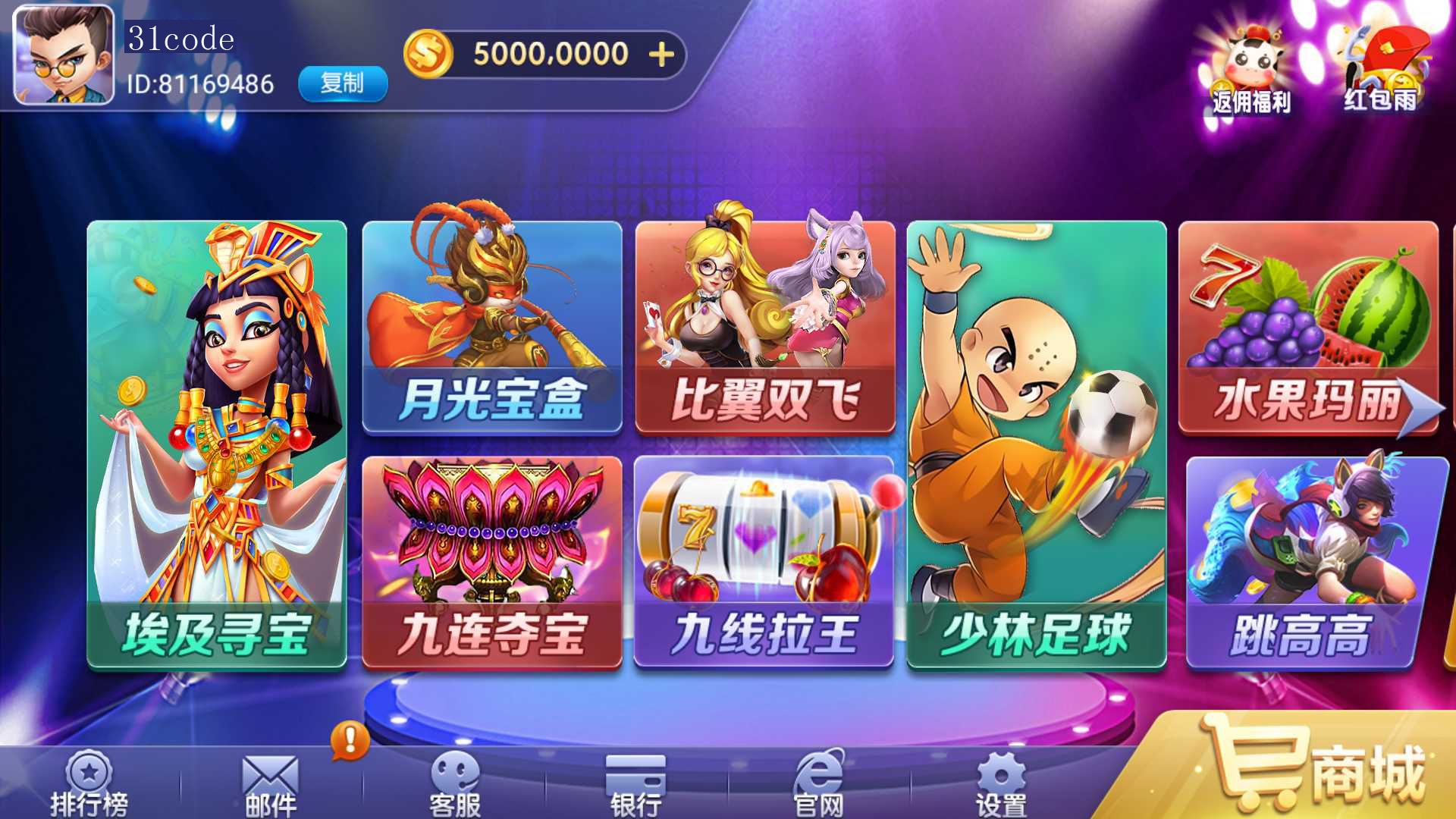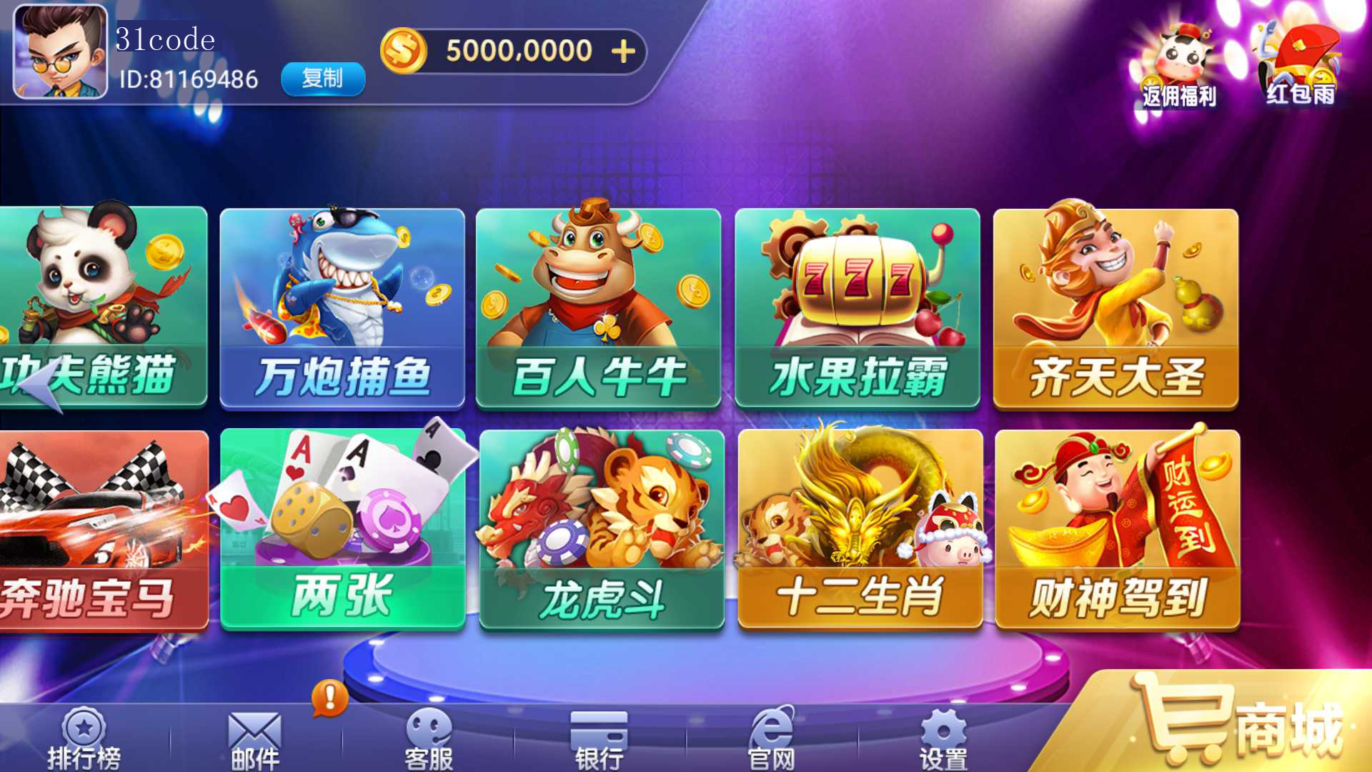 平台子游戏:埃及寻宝,月光宝盒,九连夺宝,比翼双飞,少林足球,水果玛丽,跳高高,赏金船长,金p梅,麻将胡了,僵尸风云,三打白骨精,功能熊猫,奔驰宝马,万炮捕鱼,百人两张,百人牛牛,龙虎斗,水果拉霸,十二生肖,齐天大圣,财神驾到。