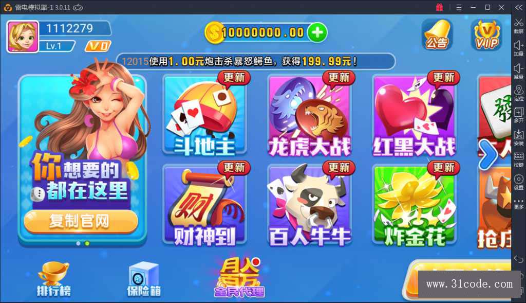 火萤棋牌娱乐游戏仿蓝月版完整全套