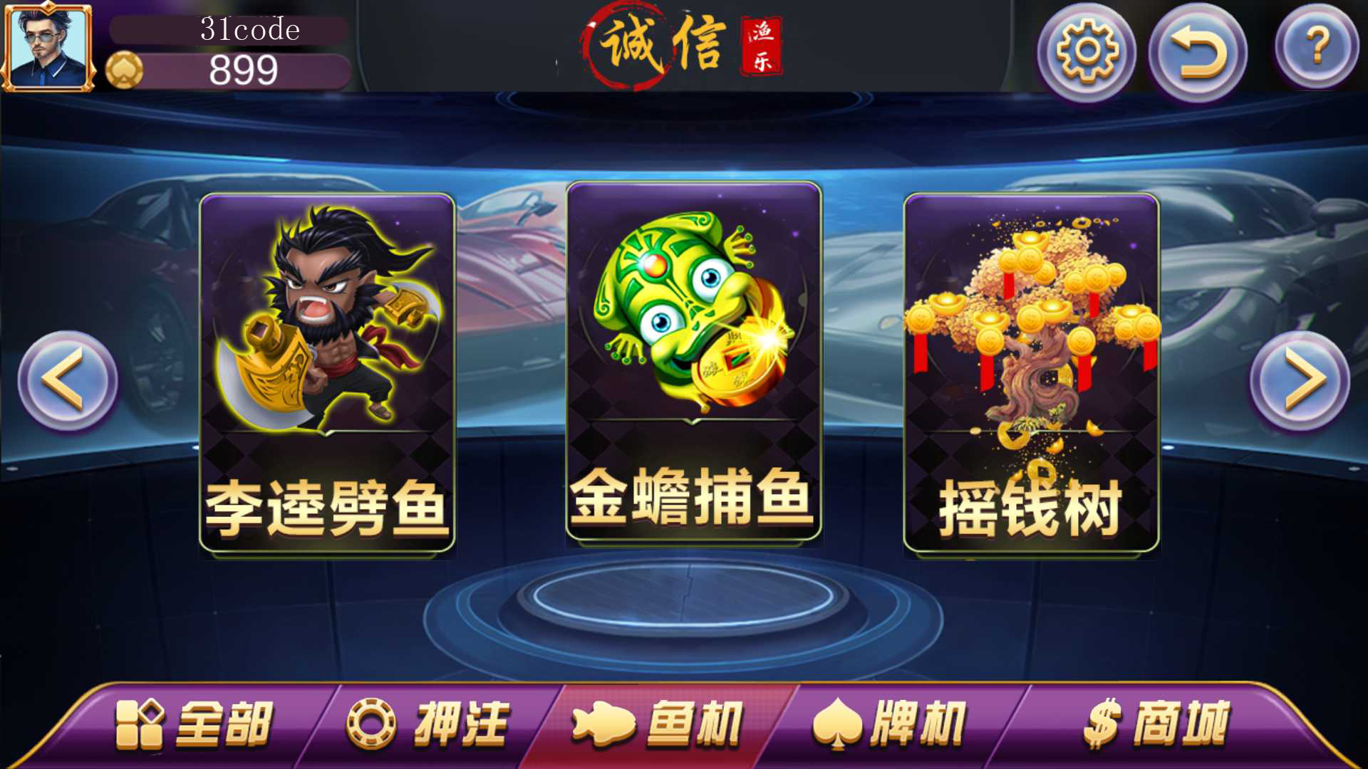 捕鱼:史前巨鳄、李逵劈鱼、金蝉捕鱼、摇钱树;