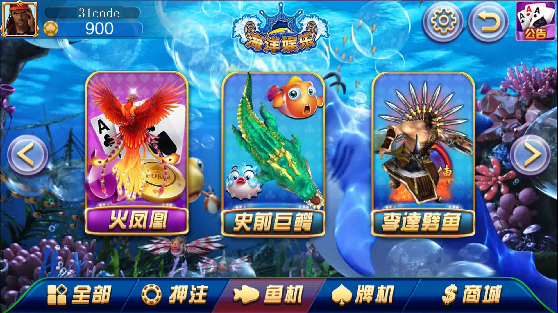 捕鱼:史前巨鳄、李逵劈鱼、金蝉捕鱼、摇钱树;
