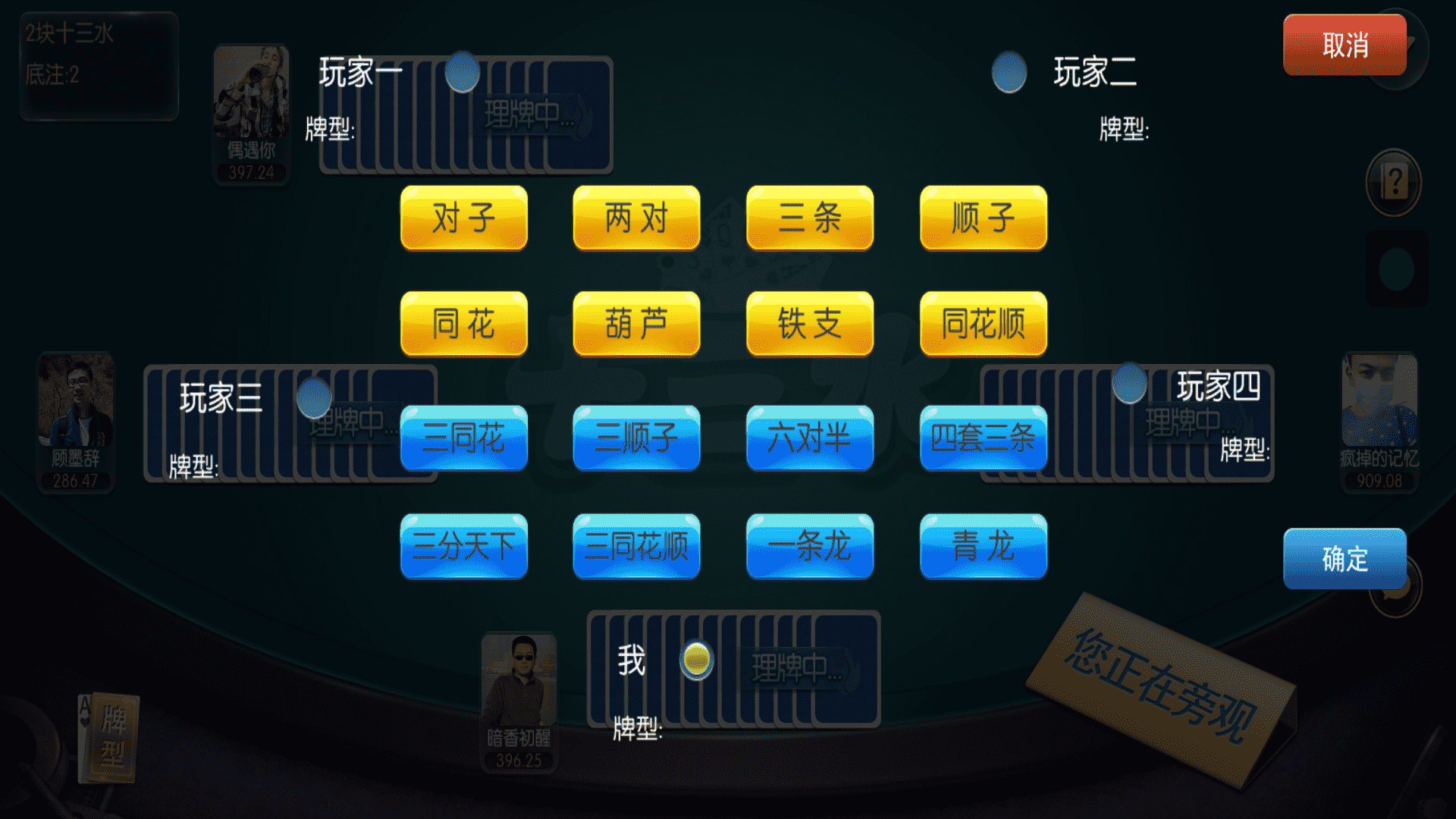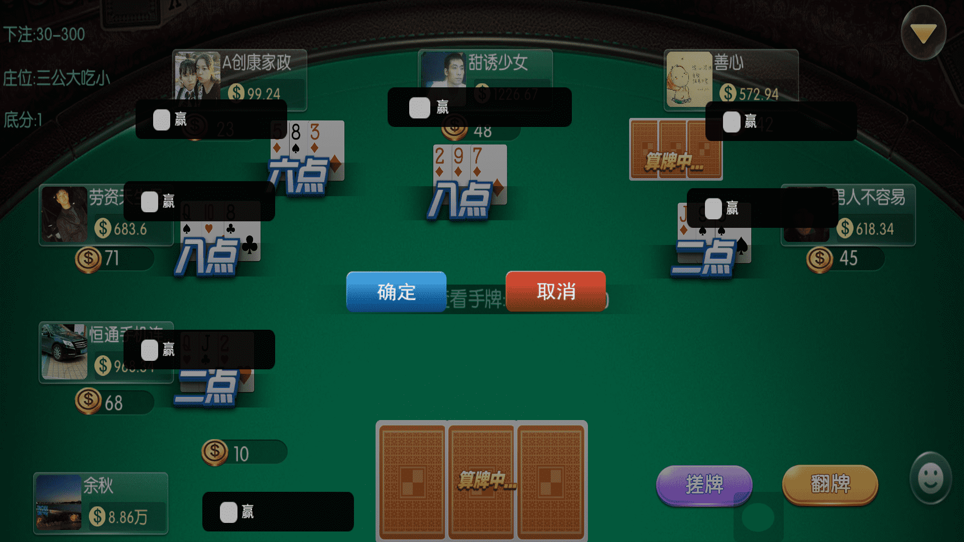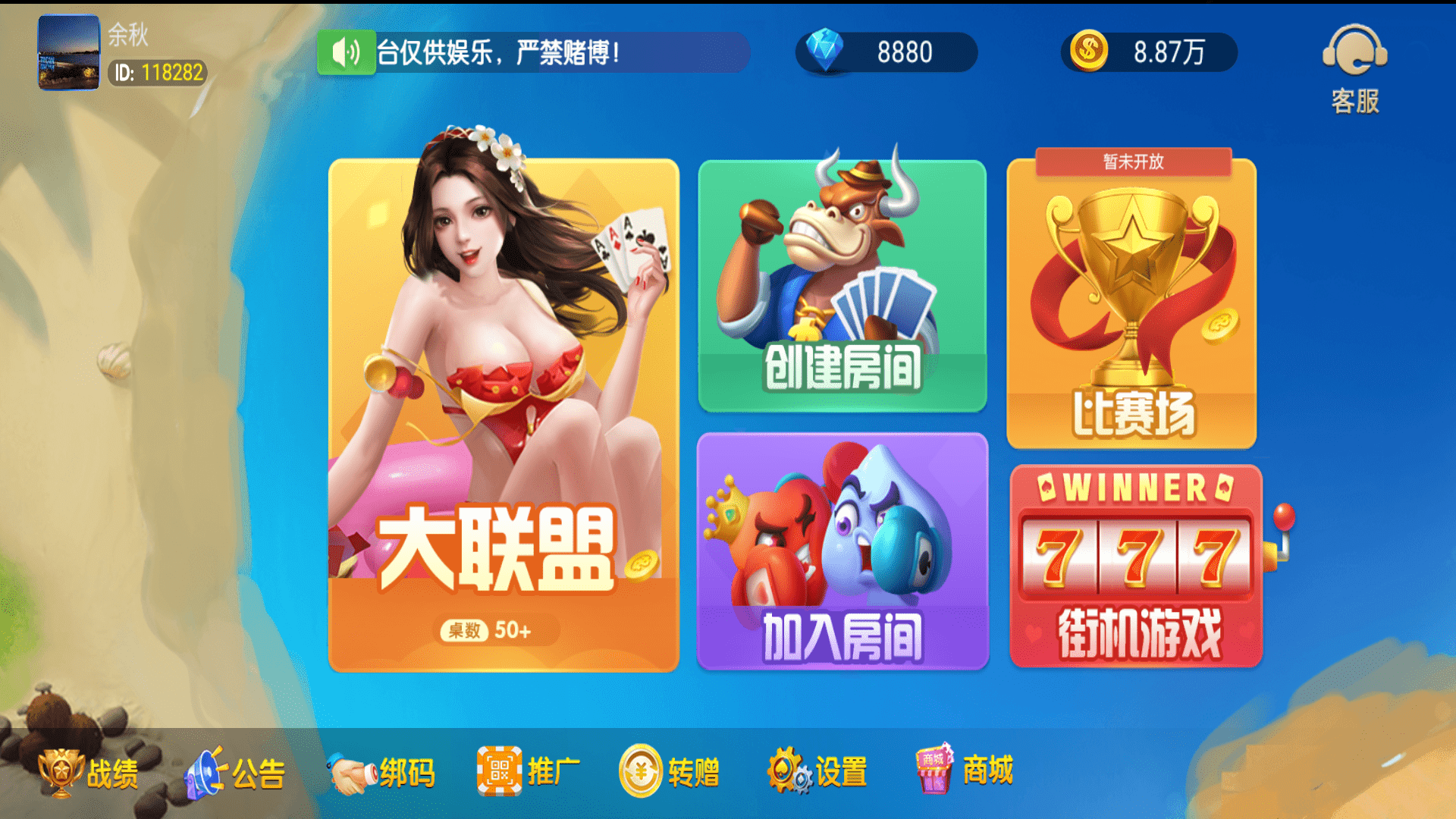 内含游戏:德州扑克、牛牛、斗公牛、跑得快、三公、扎金花、十三水、红中麻将、斗地主、血战麻将、山西推倒胡、点子牛、百人场里有龙虎斗、百家乐、推筒子、红包扫雷