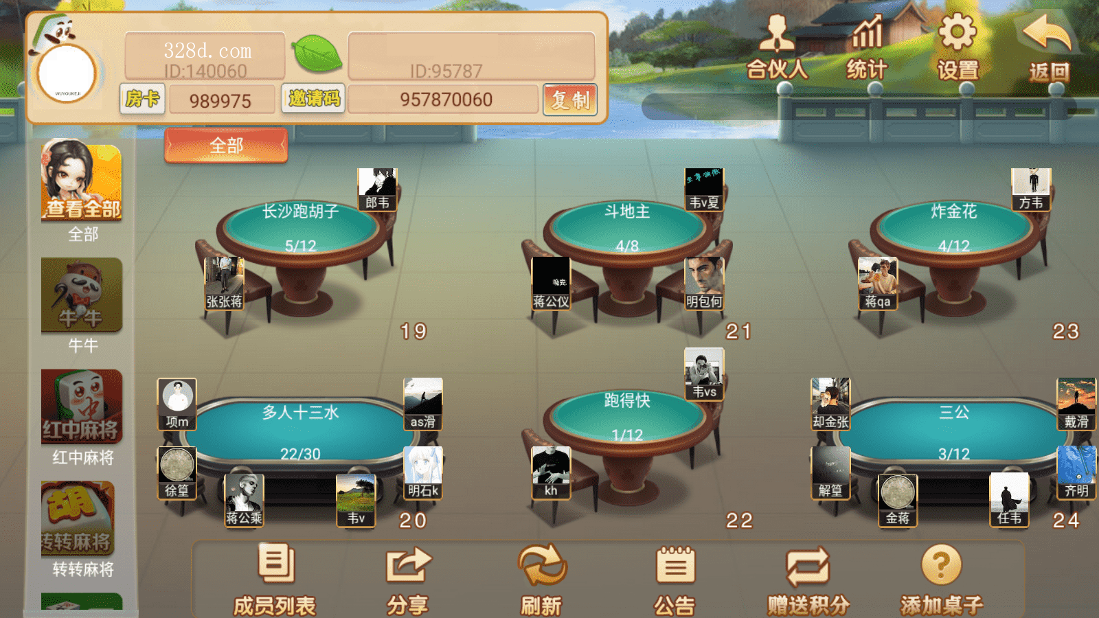 这套全新量推房卡棋牌游戏,java服务游戏,支持大联盟,游戏包括红中麻将、转转麻将、血战麻将、血流麻将、捉鸡麻将、平阳台炮、灵溪麻将、三门麻将、柳州麻将、点炮麻将、长沙跑胡子、衡阳跑胡子、郴州跑胡子、多人十三水、 斗地主、跑得快、炸金花、温州十三水等游戏,游戏有控制而且很强悍,带机器人占位,这个版不管ui还是功能都是非常不错的,这个也是花了很长时间做的。