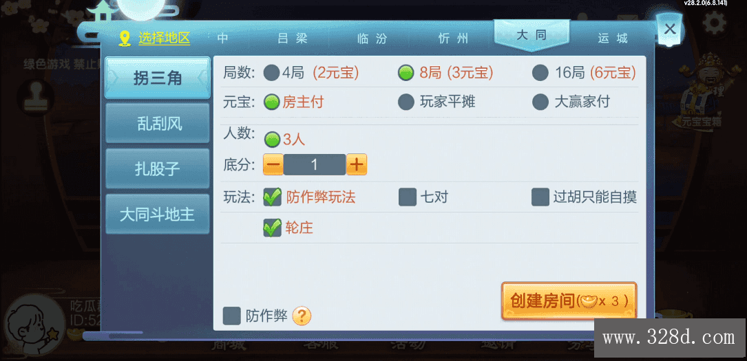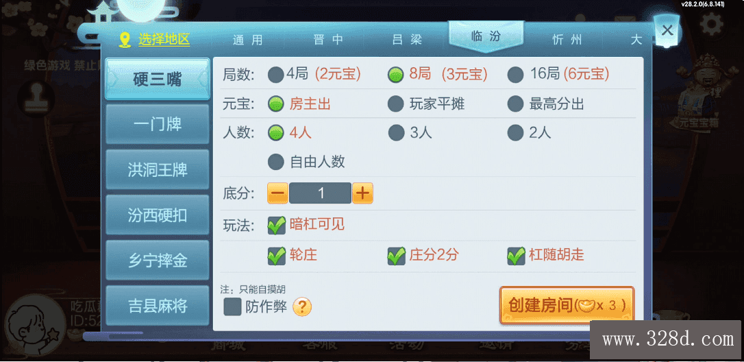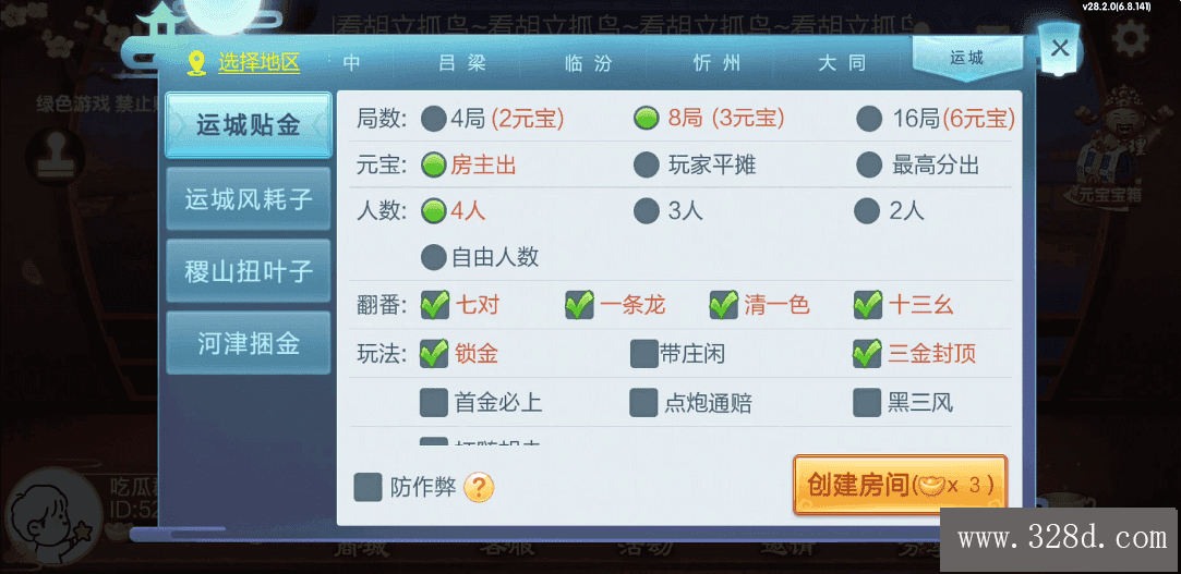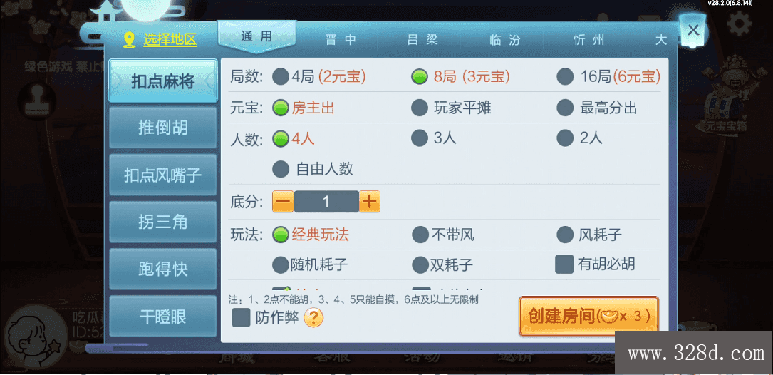 房卡加比赛模式,这比赛模式很多人也想要,子游戏也是山西地区的热门主流玩法了,稳稳的一个省运营平台。