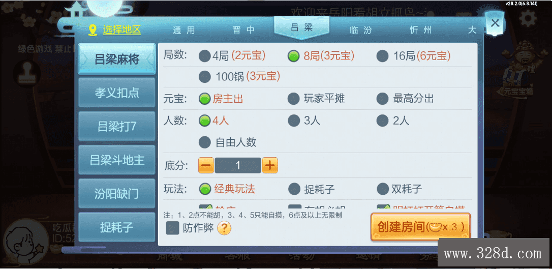 吕梁:吕梁麻将、吕梁打7、吕梁斗地主、汾阳缺门、捉耗子、