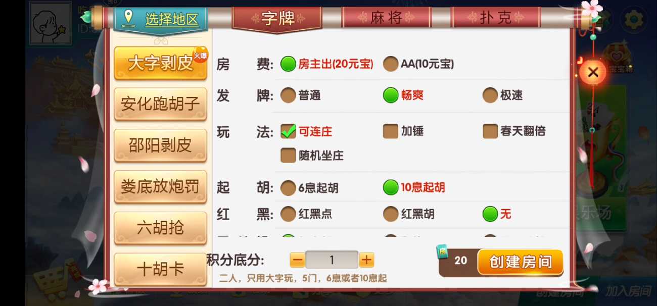 扑克:11张跑得快、跑得快(15、16张)、三打哈、岳阳三打哈、株洲牛十别、掂坨、打炸弹、沅江千分、株洲打码子、新三打哈、半边天炸、打筒子、霸炸弹、衡阳三打哈、湘潭三打哈、永州包牌、