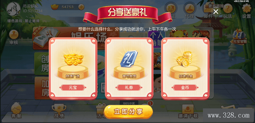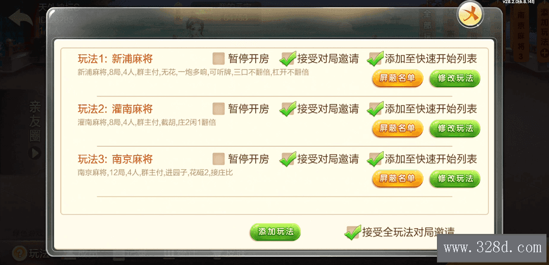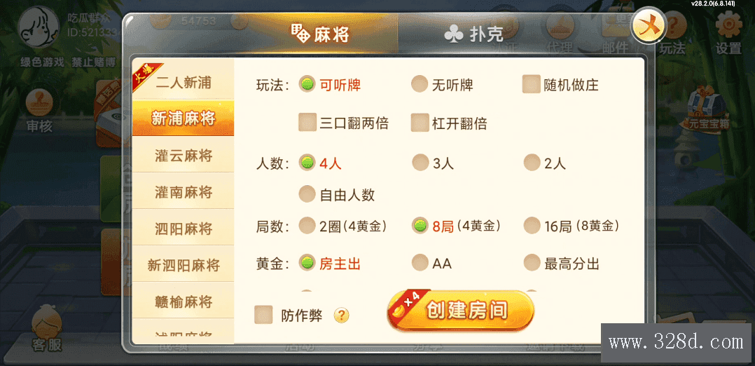 这是七星江苏地区的端,UI也不错,七星这块做的挺好的。这个端是房卡端+亲友圈模式。