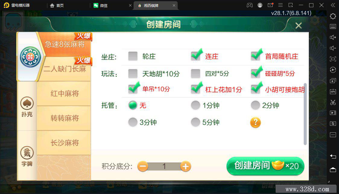 七星湘西地级市湘西麻将扑克字牌房卡端12子游戏+亲友圈乐豆模式+比赛模式+双端 附件 文件名: 七星定制湘西 提取码: ****(需购买后查看) 解压密码: ****(需购买后查看) 下载文件 附件购买 售价:168 积分 开通VIP或更高级的会员可免费下载该文件 请登录 或 注册购买 这里是自定义内容,请在【用户中心配置 - 销售配置 - 附件下载 - 未登录提示】修改 房卡约战类 转载请说明出处 内容投诉31棋牌源码资源网 » 七星湘西地级市湘西麻将扑克字牌房卡端12子游戏+亲友圈乐豆模式+比赛模式+双端