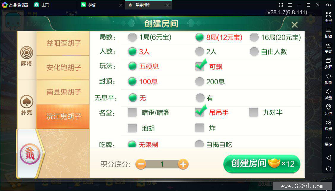 七星益阳麻将扑克字牌房卡端14子游戏+亲友圈乐豆模式+比赛模式+双端