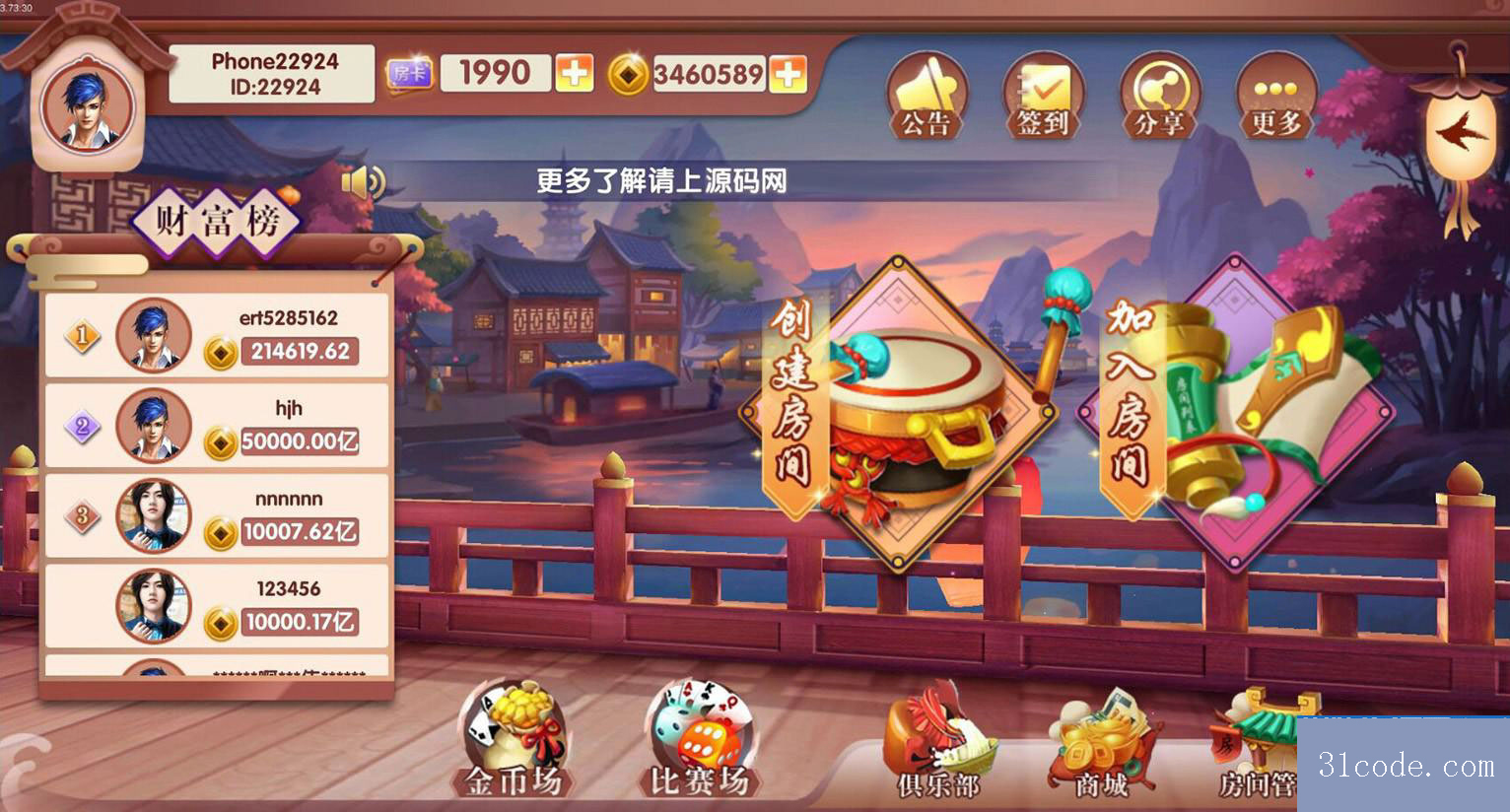 金币场:内带各种电玩与地方麻将等33来款子游戏