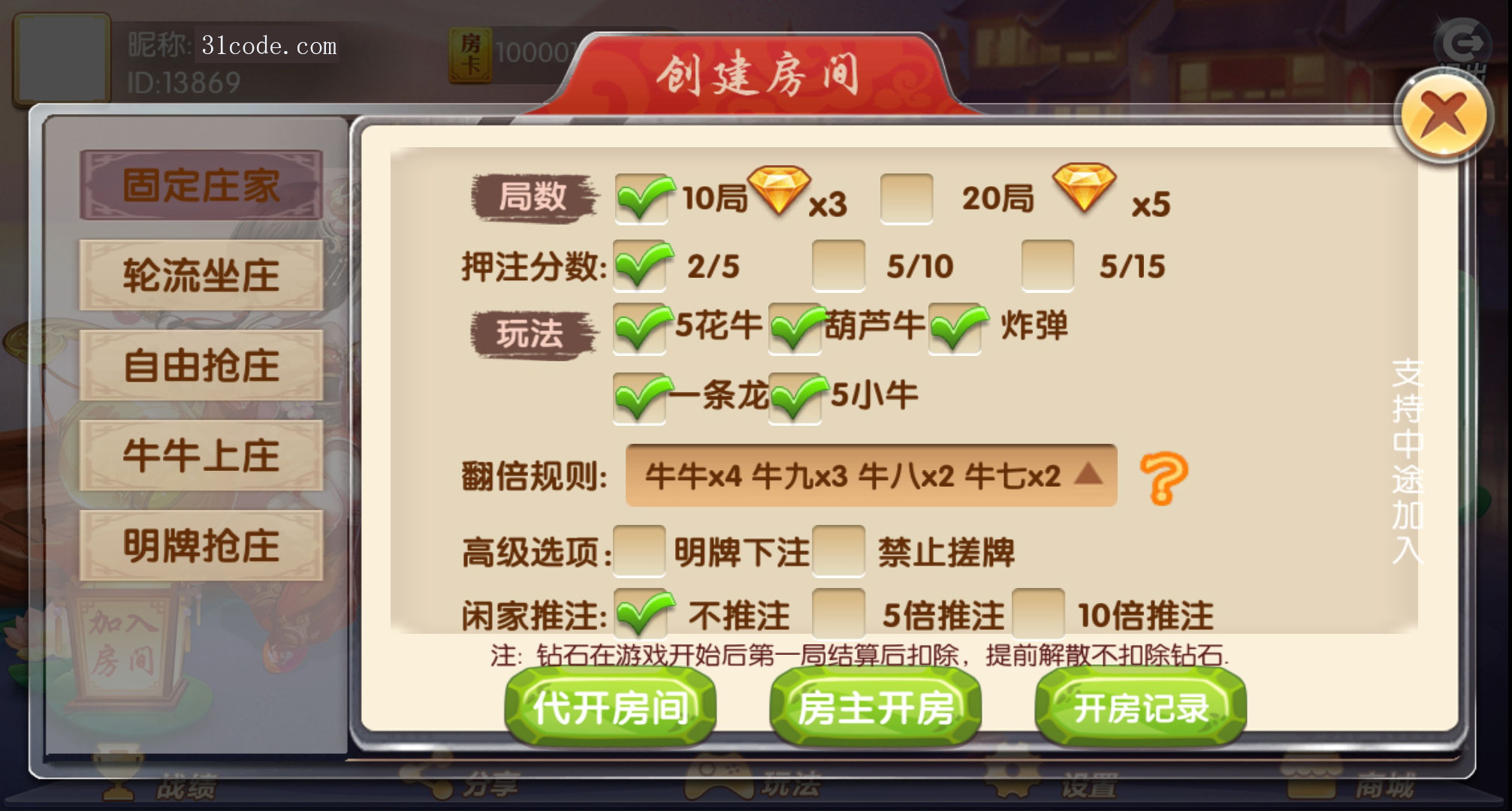 大唐游戏房卡组件 游戏包含牛牛6种玩法。跑的快,长沙麻将,转转麻将,红中麻将,炸金花。带代理开房等等,免费送给会员。 附件 文件名: 大唐游戏房卡组件 提取码: ****(需购买后查看) 解压密码: ****(需购买后查看) 下载文件 附件购买 售价:368 积分 开通SVIP或更高级的会员可免费下载该文件 请登录 或 注册购买 这里是自定义内容,请在【用户中心配置 - 销售配置 - 附件下载 - 未登录提示】修改 房卡约战类 转载请说明出处 内容投诉31棋牌源码资源网 » 大唐游戏房卡组件