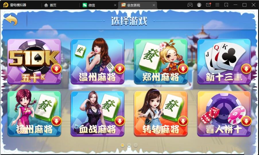 平台子游戏:诈金花,红中麻将,血流成河,广东麻将,比鸡,大庆麻将,本溪麻将,万安麻将,五十K,温州麻将,郑州麻将,新十三水,扬州麻将,血战麻将,转转麻将,百人拼十。
