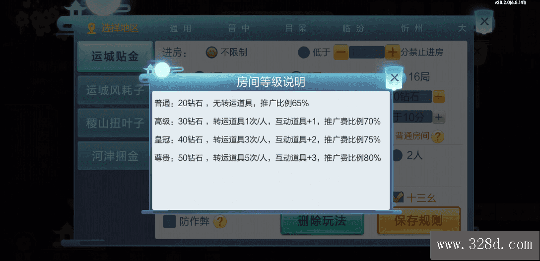 房卡加比赛模式,这比赛模式很多人也想要,子游戏也是山西地区的热门主流玩法了,稳稳的一个省运营平台。